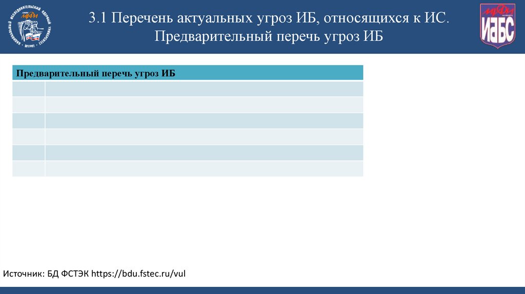 3.1 Перечень актуальных угроз ИБ, относящихся к ИС.Предварительный перечь угроз ИБ