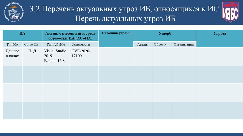 3.2 Перечень актуальных угроз ИБ, относящихся к ИС.Перечь актуальных угроз ИБ