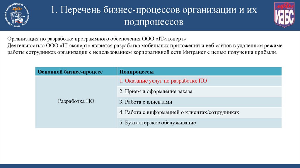 1. Перечень бизнес-процессов организации и ихподпроцессов