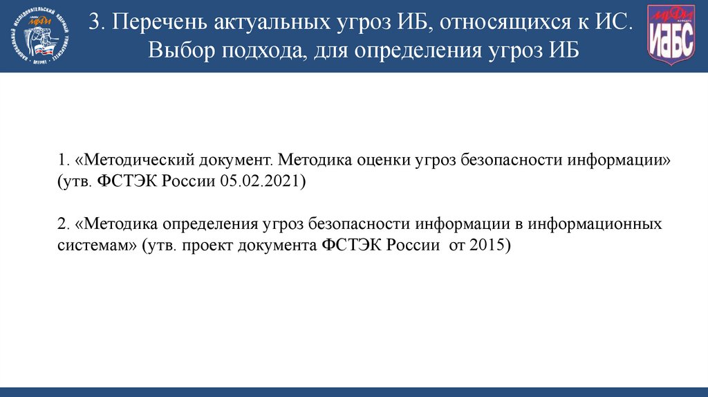 3. Перечень актуальных угроз ИБ, относящихся к ИС.Выбор подхода, для определения угроз ИБ
