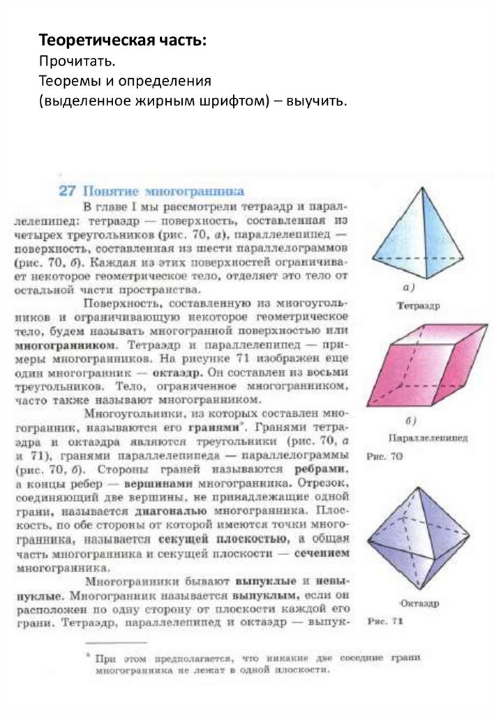 Понятие многогранника. Вершины, ребра, грани многогранника. Призма. Правильная призма. Пирамида