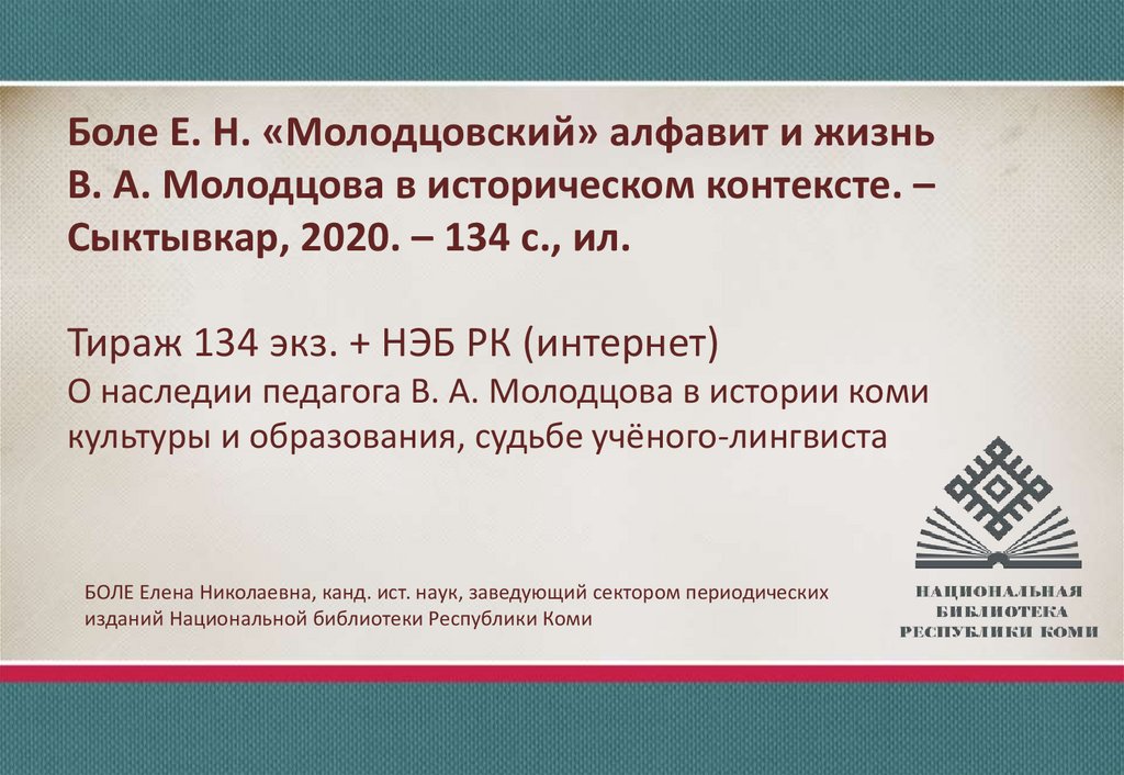Боле Е. Н. «Молодцовский» алфавит и жизньВ. А. Молодцова в историческом контексте. –