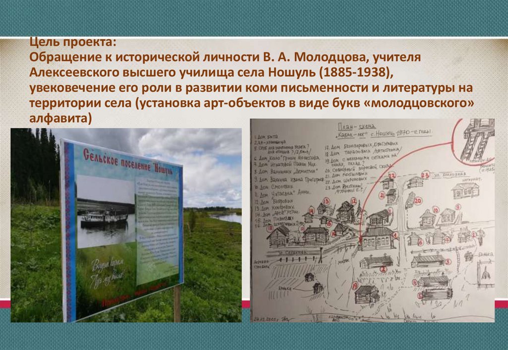 территории села (установка арт-объектов в виде букв «молодцовского»