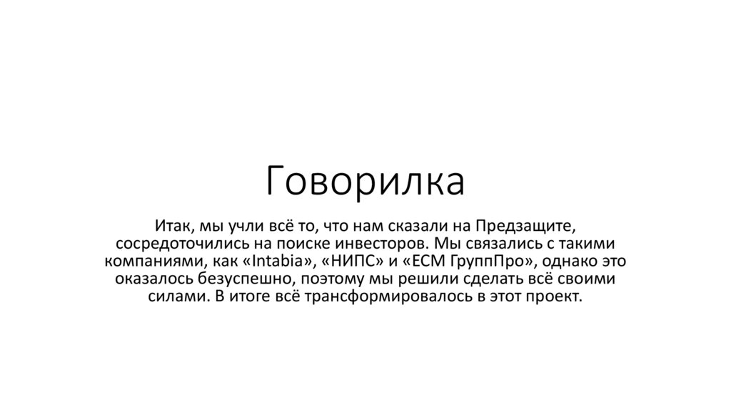 ГоворилкаИтак, мы учли всё то, что нам сказали на Предзащите,