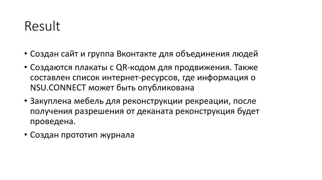 Result• Создан сайт и группа Вконтакте для объединения людей