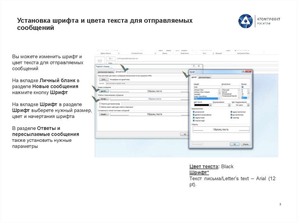 Установка шрифта и цвета текста для отправляемыхсообщений