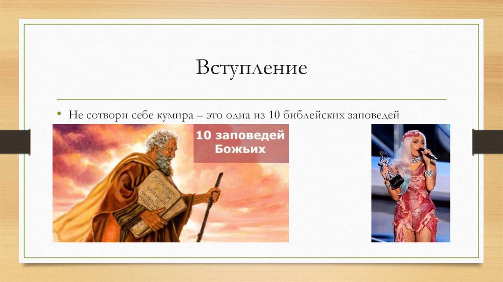 Вступление• Не сотвори себе кумира – это одна из 10 библейских заповедей