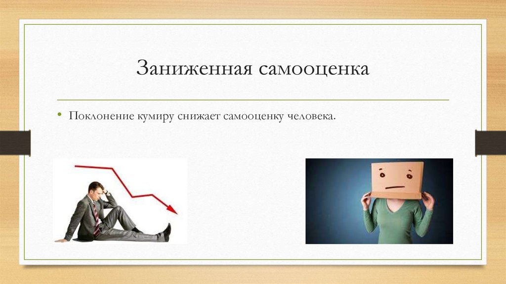 Заниженная самооценка• Поклонение кумиру снижает самооценку человека.