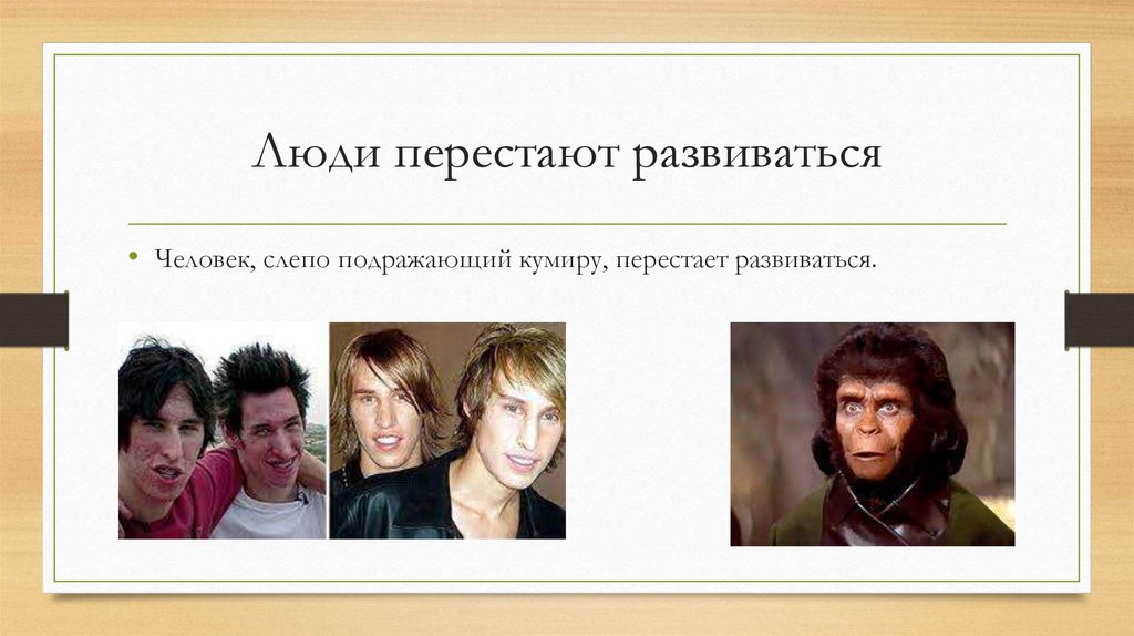 Люди перестают развиваться• Человек, слепо подражающий кумиру, перестает развиваться.