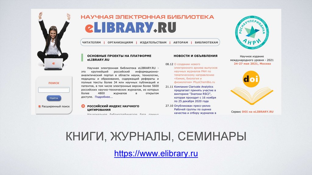 КНИГИ, ЖУРНАЛЫ, СЕМИНАРЫhttps://www.elibrary.ru