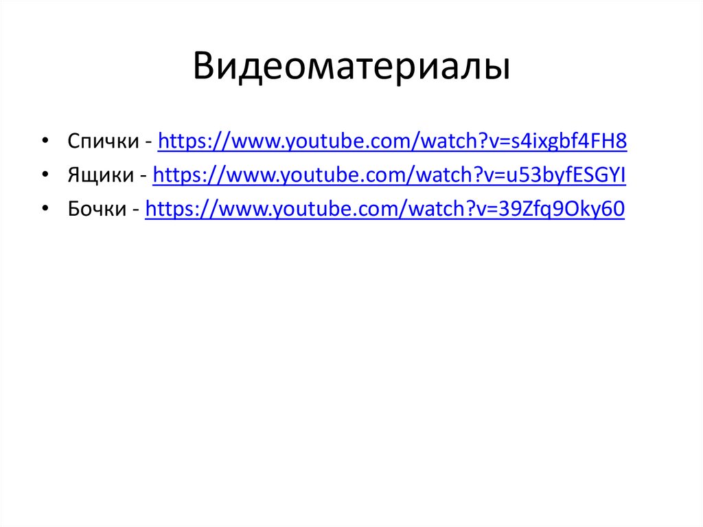 Видеоматериалы• Спички - https://www.youtube.com/watch?v=s4ixgbf4FH8