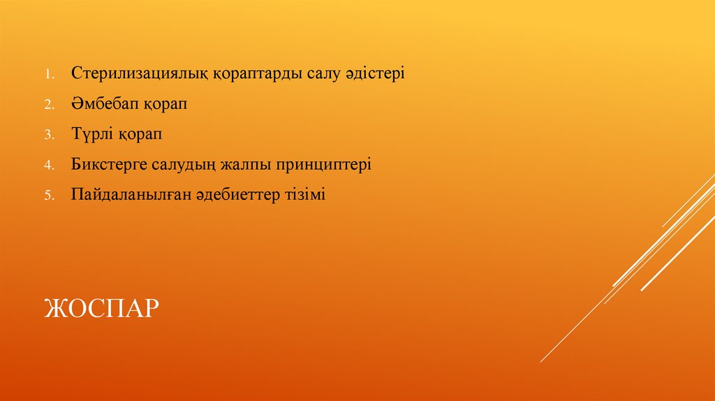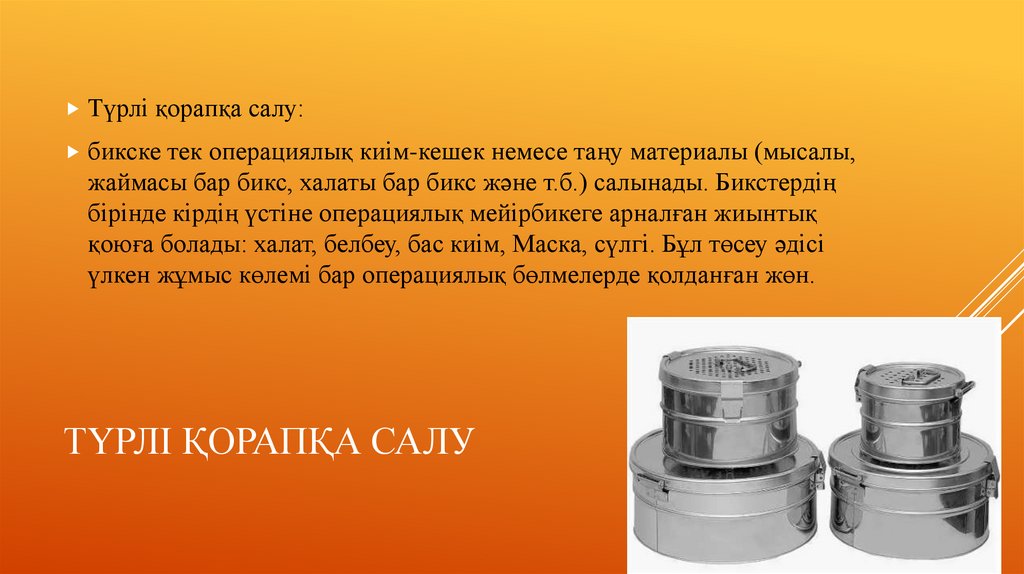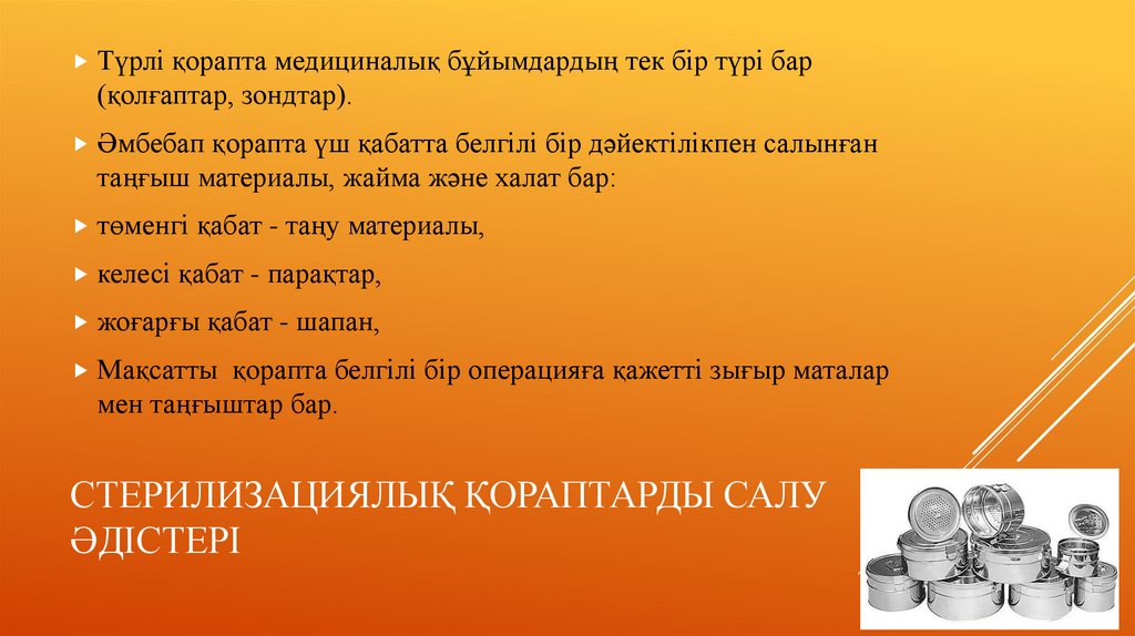 СТЕРИЛИЗАЦИЯЛЫҚ ҚОРАПТАРДЫ САЛУ