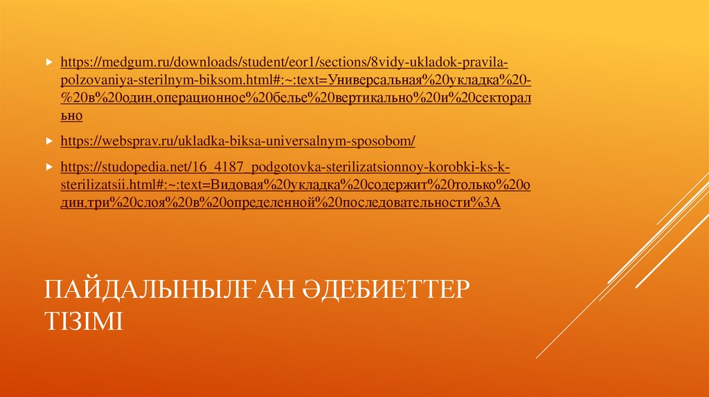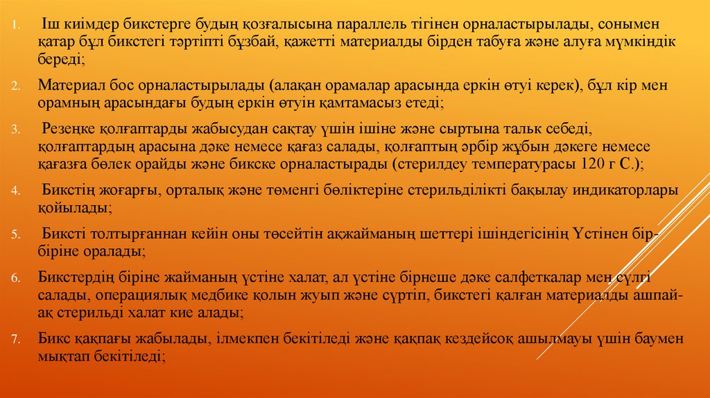 МАТЕРИАЛДЫ СТЕРИЛЬДЕУҚОРАПТАРЫНА САЛУ