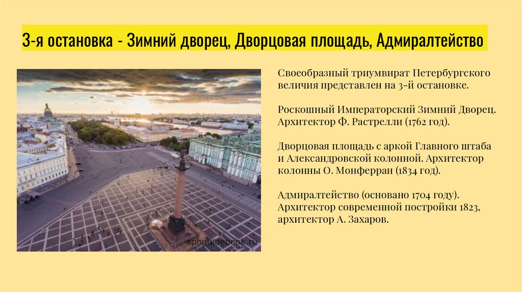 3-я остановка - Зимний дворец, Дворцовая площадь, АдмиралтействоСвоеобразный триумвират Петербургского