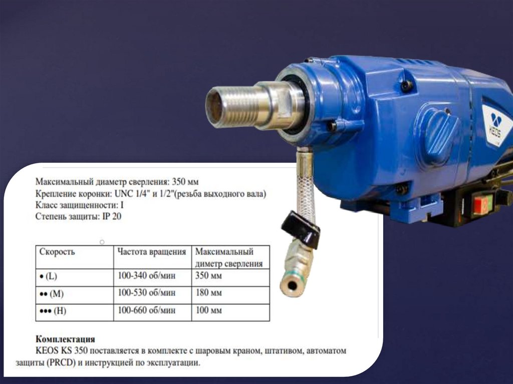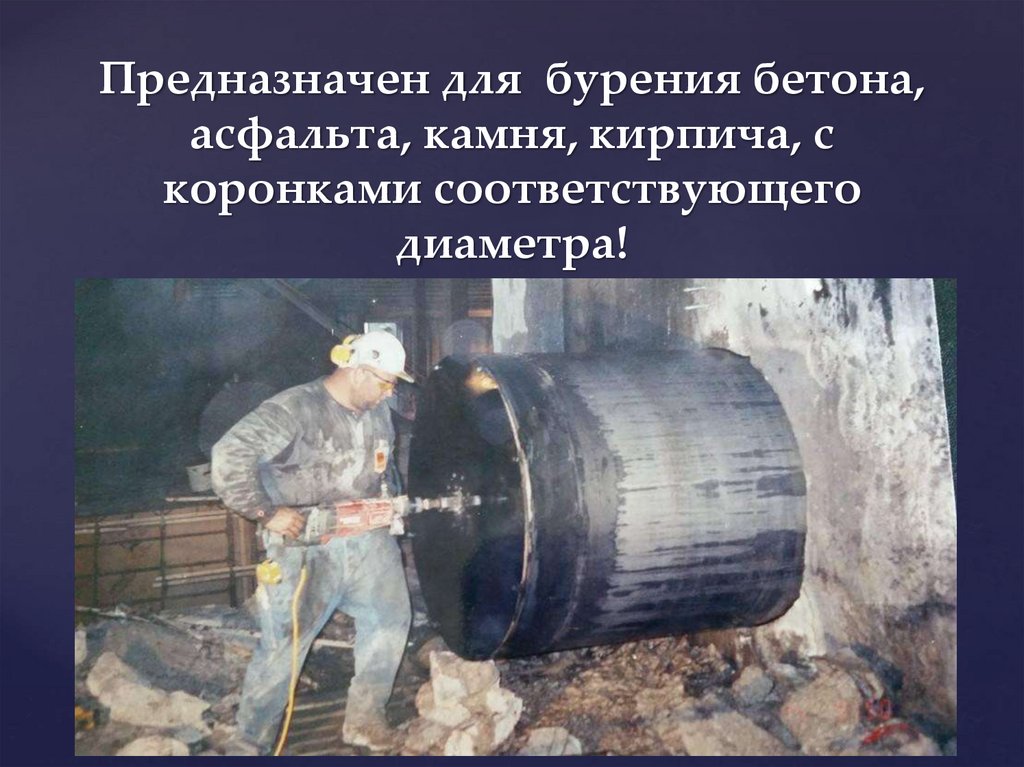 Предназначен для бурения бетона,асфальта, камня, кирпича, с