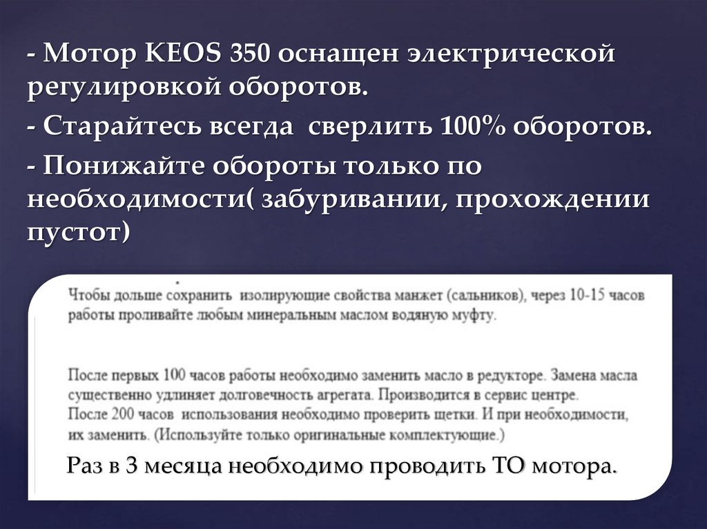 - Мотор KEOS 350 оснащен электрическойрегулировкой оборотов.