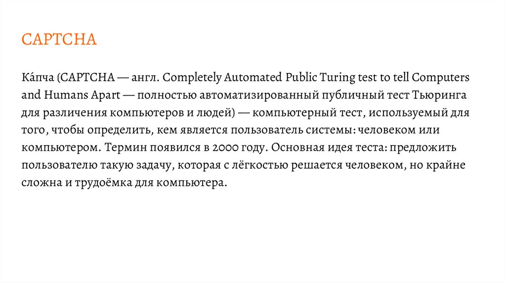 компьютером. Термин появился в 2000 году. Основная идея теста: предложить