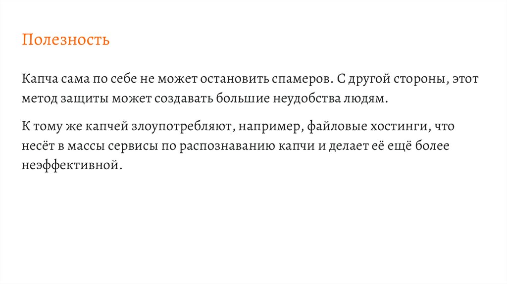 К тому же капчей злоупотребляют, например, файловые хостинги, что