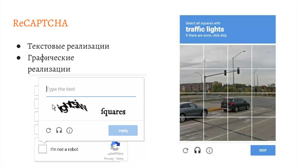 Варианты реализацииВ наиболее распространённом варианте капчи пользователь вводит символы,