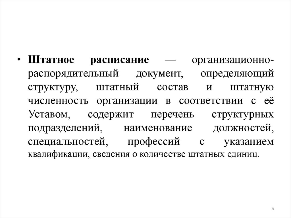 • Штатное расписание — организационнораспорядительныйдокумент,