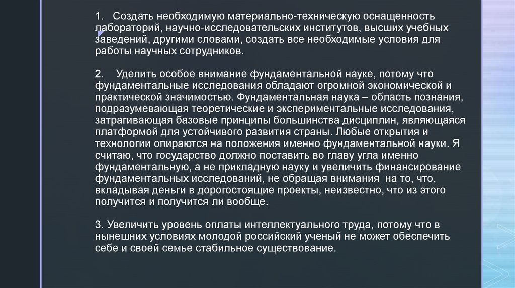 фундаментальную, а не прикладную науку и увеличить финансирование