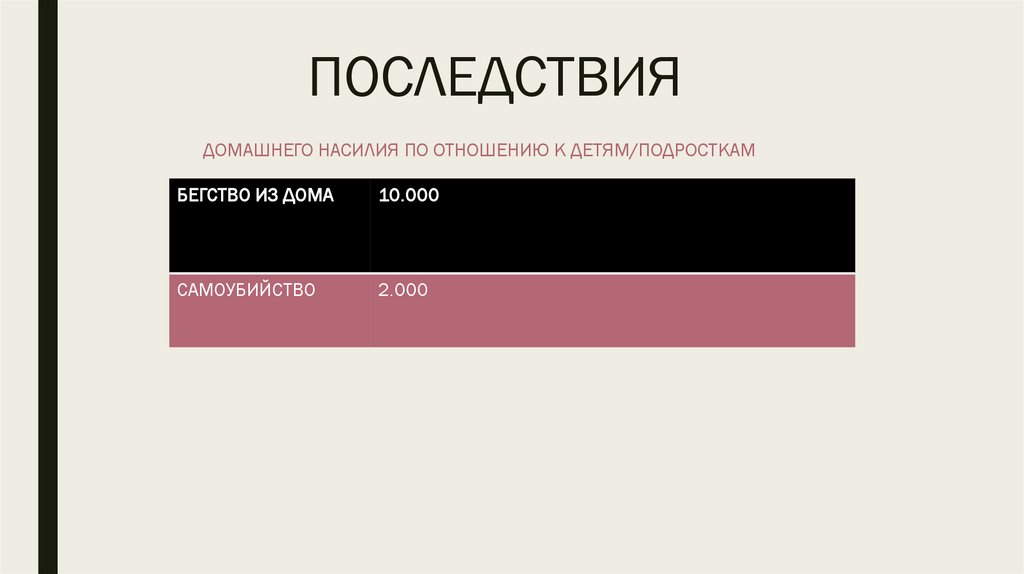 ПОСЛЕДСТВИЯДОМАШНЕГО НАСИЛИЯ ПО ОТНОШЕНИЮ К ДЕТЯМ/ПОДРОСТКАМ