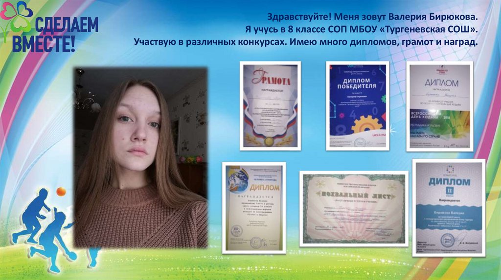 Здравствуйте! Меня зовут Валерия Бирюкова.Я учусь в 8 классе СОП МБОУ «Тургеневская СОШ».