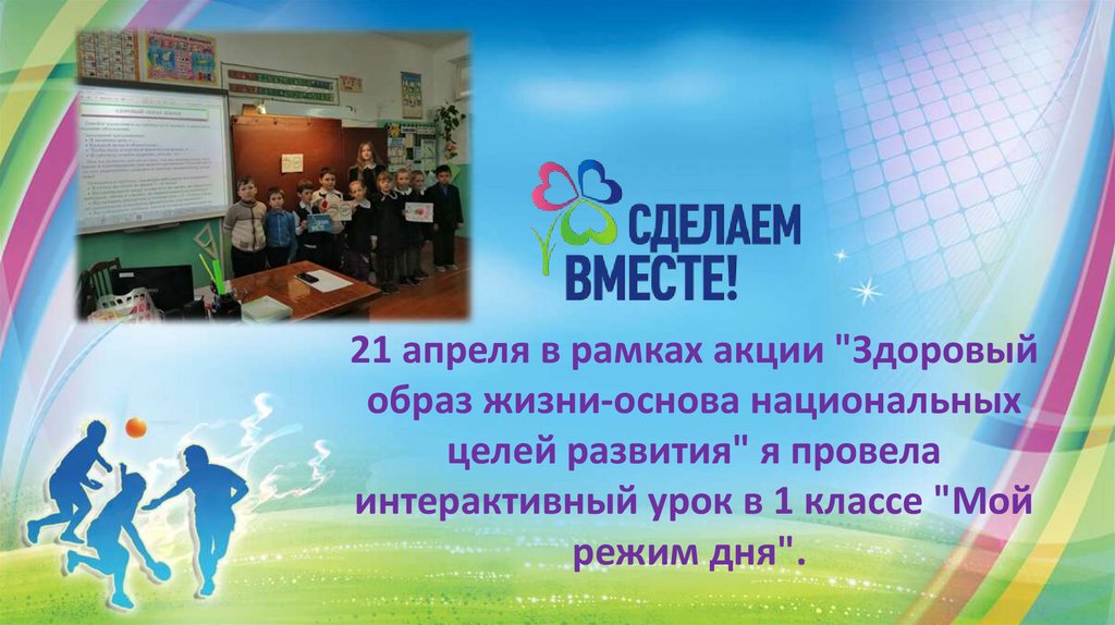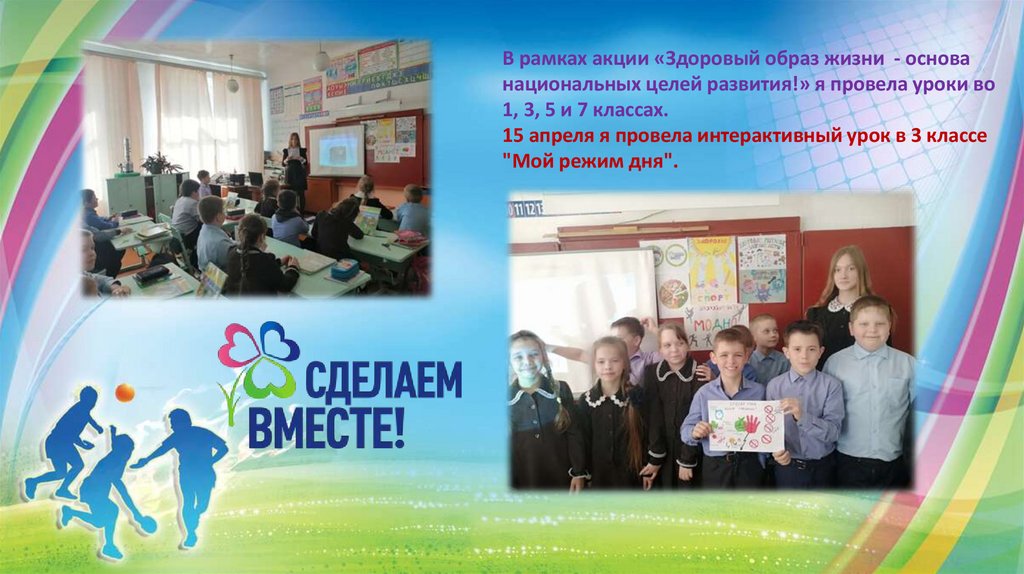 В рамках акции «Здоровый образ жизни - основанациональных целей развития!» я провела уроки во
