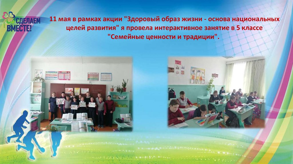 11 мая в рамках акции "Здоровый образ жизни - основа национальныхцелей развития" я провела интерактивное занятие в 5 классе