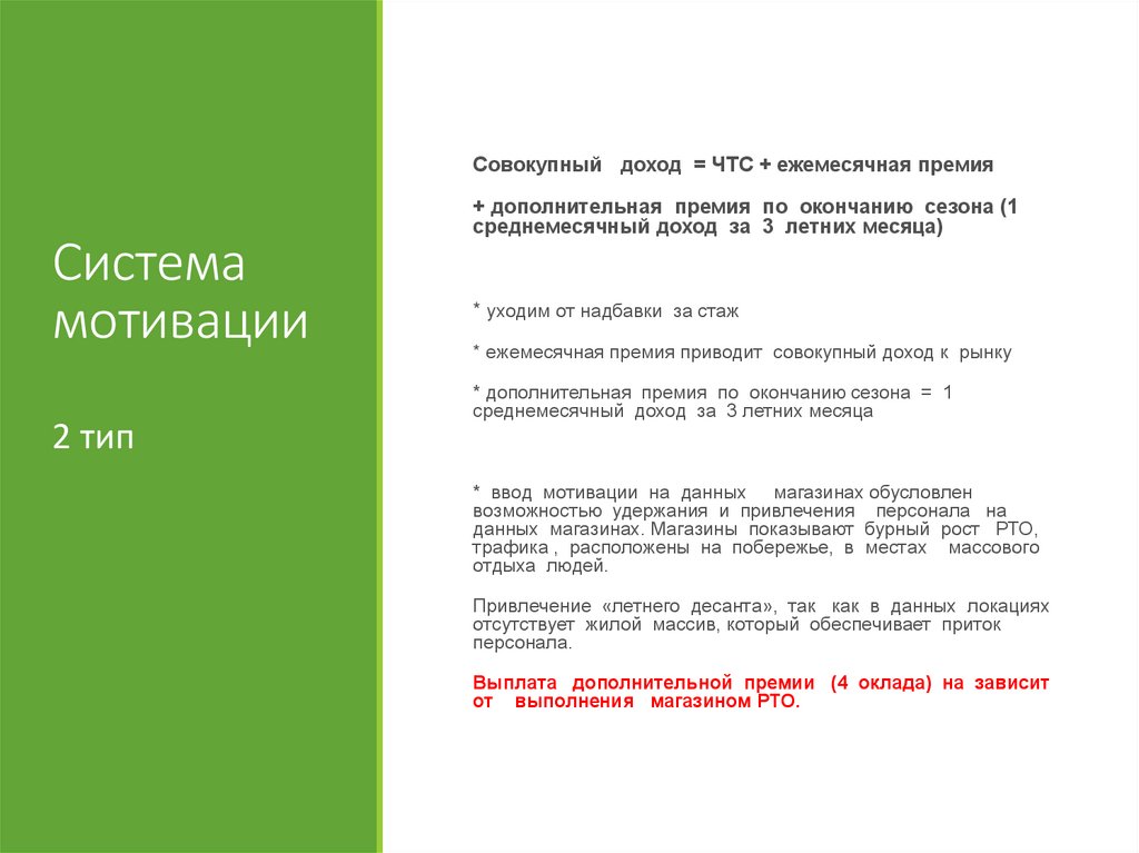 Совокупный доход = ЧТС + ежемесячная премияСистема