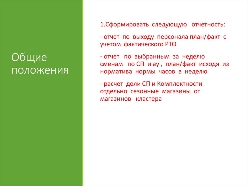 1.Сформировать следующую отчетность:- отчет по выходу персонала план/факт с