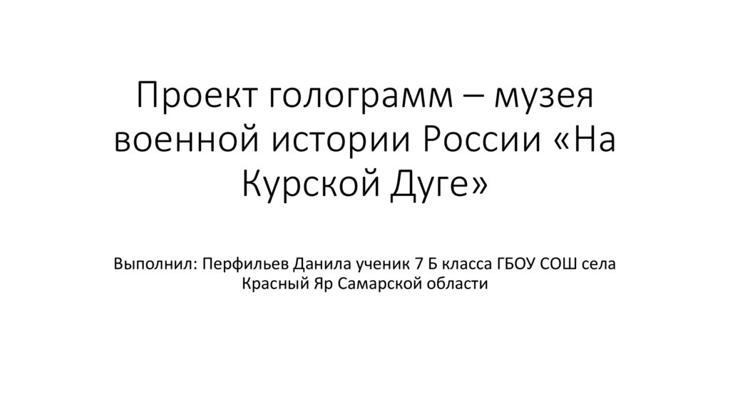 Проект голограмм – музея военной истории России «На Курской Дуге»