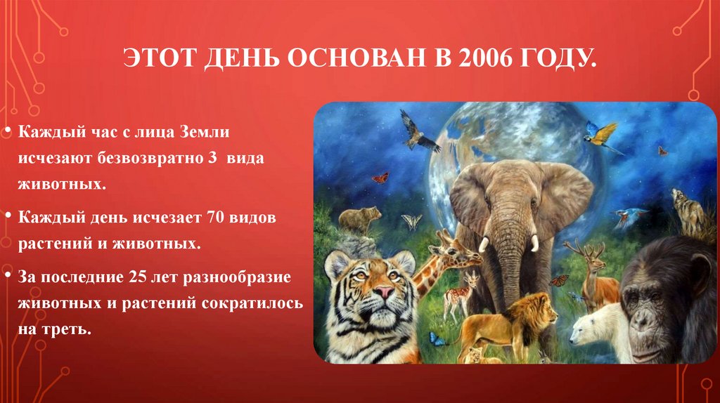 ЭТОТ ДЕНЬ ОСНОВАН В 2006 ГОДУ.• Каждый час с лица Земли