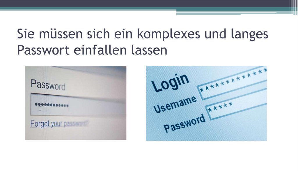 Sie müssen sich ein komplexes und langesPasswort einfallen lassen