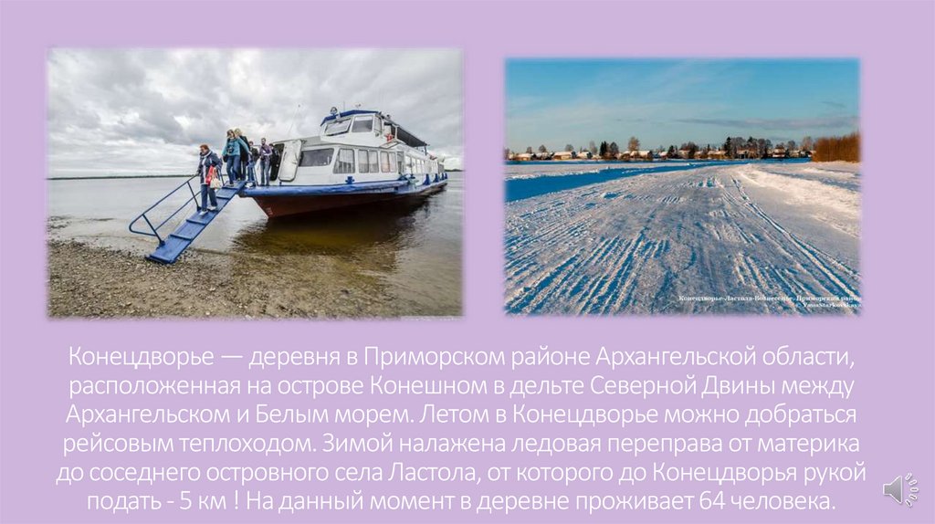 до соседнего островного села Ластола, от которого до Конецдворья рукой