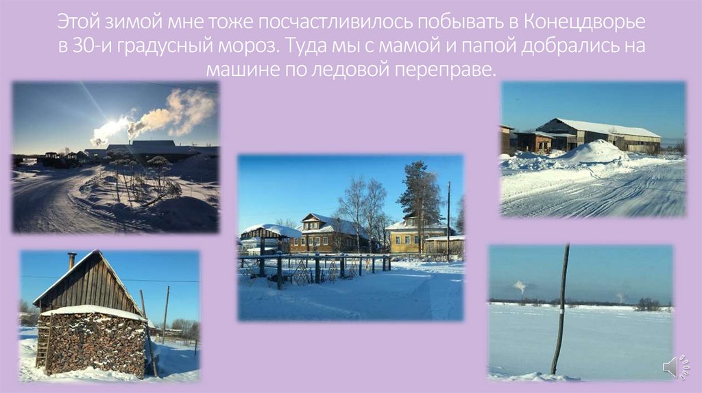 Этой зимой мне тоже посчастливилось побывать в Конецдворьев 30-и градусный мороз. Туда мы с мамой и папой добрались на