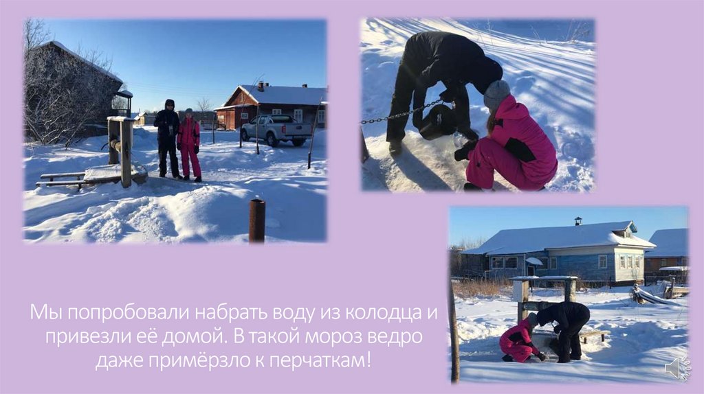 Мы попробовали набрать воду из колодца ипривезли её домой. В такой мороз ведро