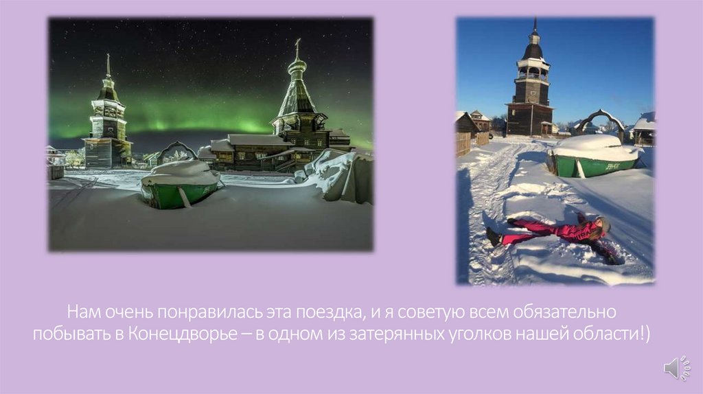 Нам очень понравилась эта поездка, и я советую всем обязательнопобывать в Конецдворье – в одном из затерянных уголков нашей области!)