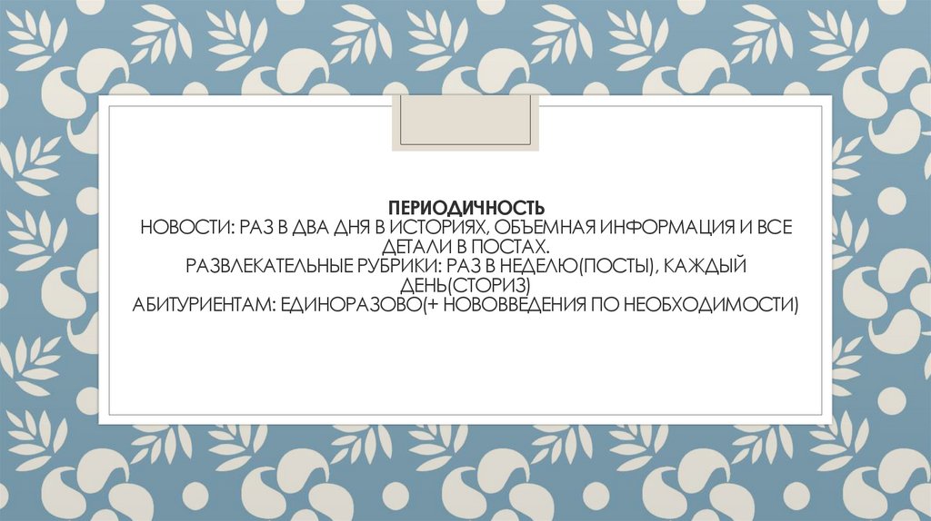 ПЕРИОДИЧНОСТЬНОВОСТИ: РАЗ В ДВА ДНЯ В ИСТОРИЯХ, ОБЪЕМНАЯ ИНФОРМАЦИЯ И ВСЕ