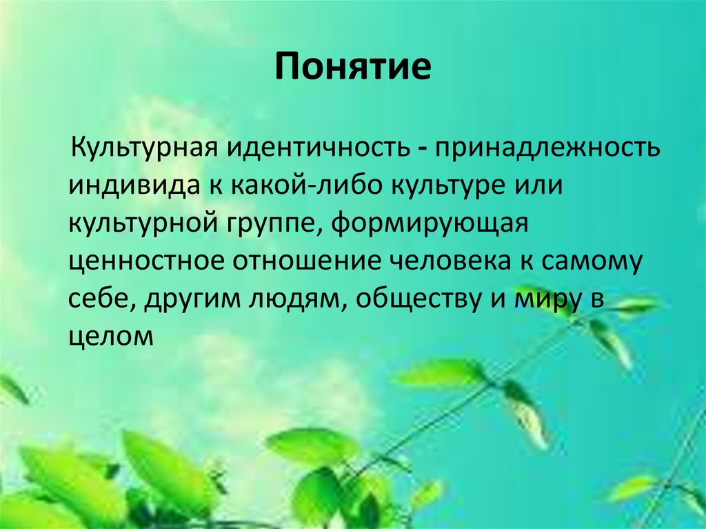 ПонятиеКультурная идентичность - принадлежность