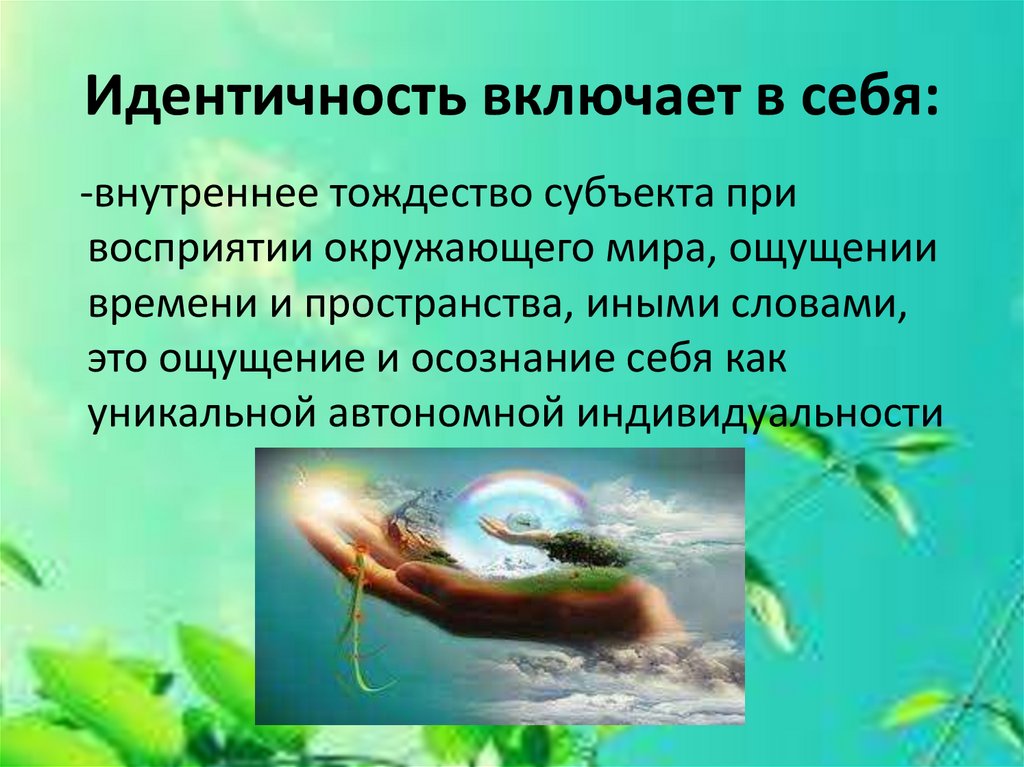 Идентичность включает в себя:-внутреннее тождество субъекта при