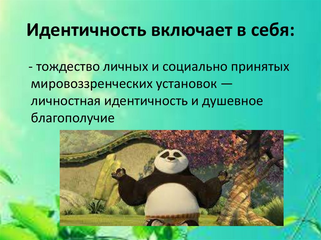 Идентичность включает в себя:- тождество личных и социально принятых