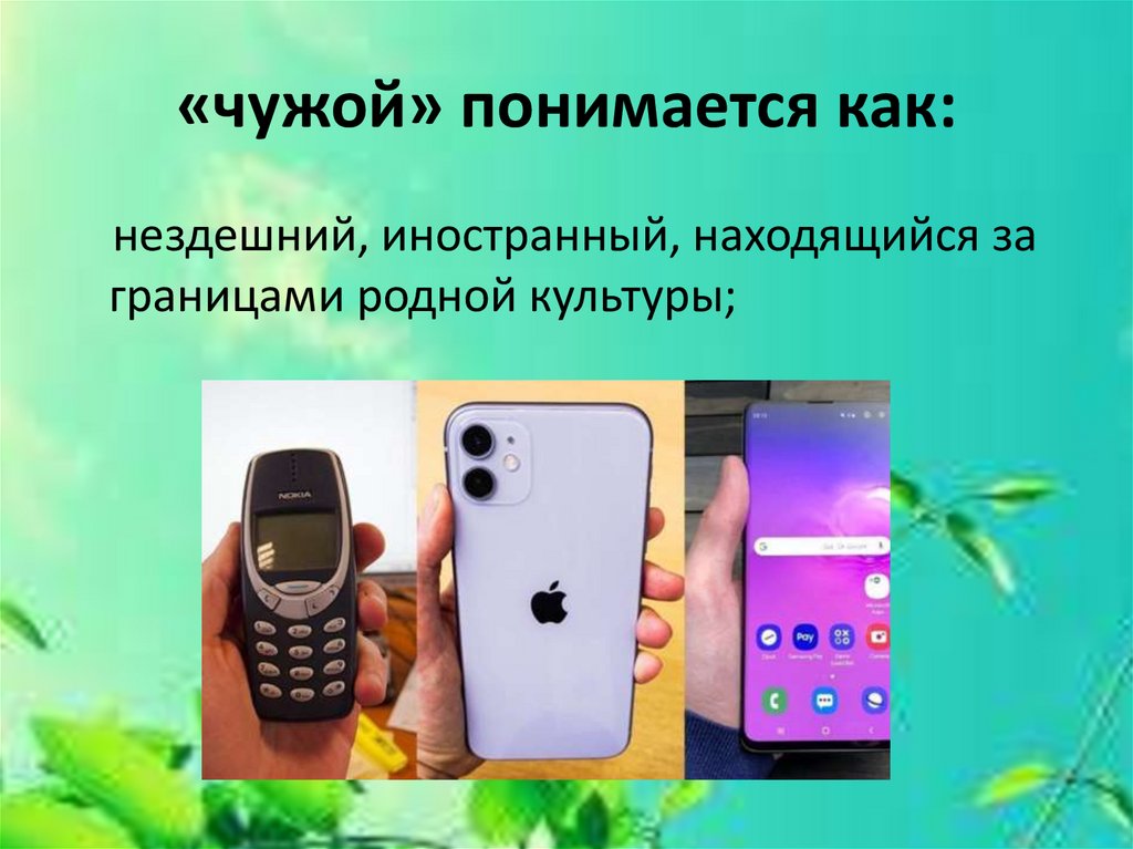 «чужой» понимается как:нездешний, иностранный, находящийся за