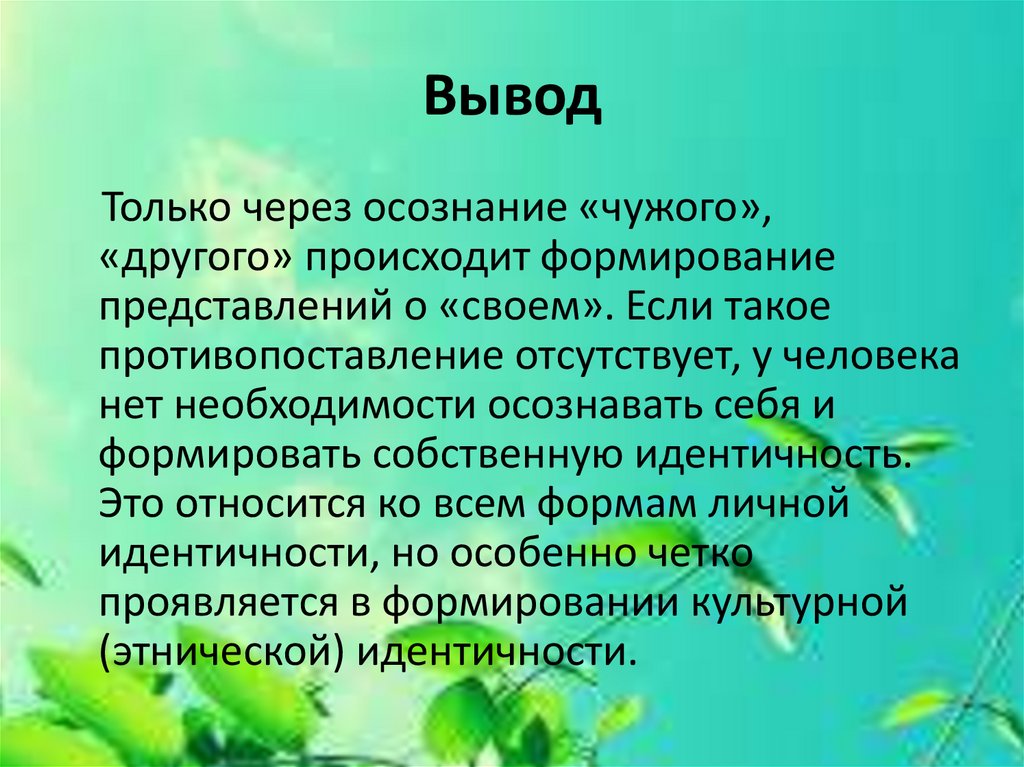 ВыводТолько через осознание «чужого»,