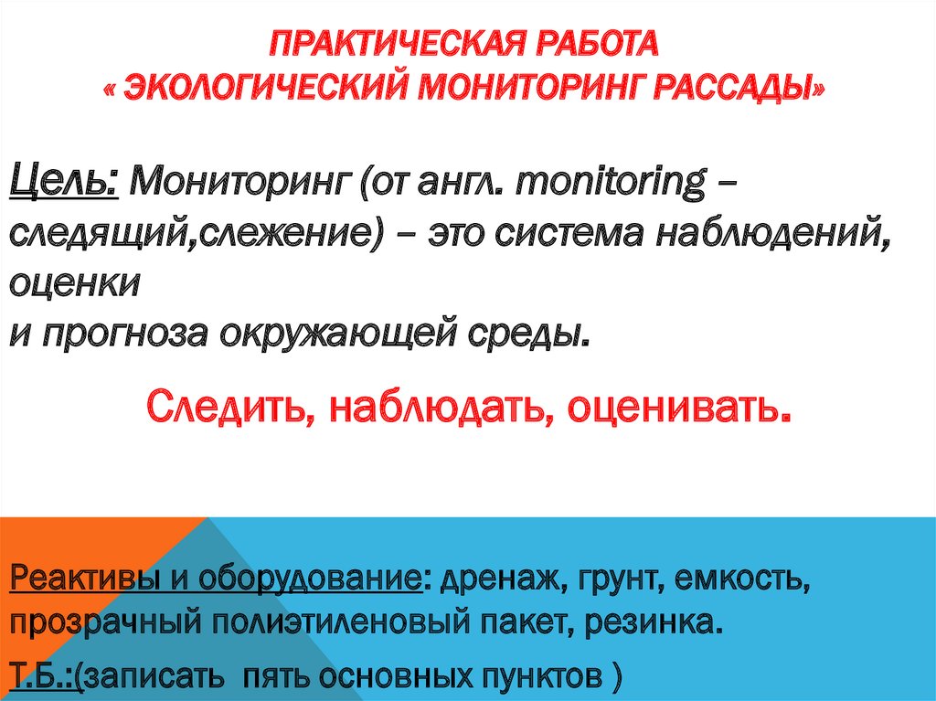 ПРАКТИЧЕСКАЯ РАБОТА« ЭКОЛОГИЧЕСКИЙ МОНИТОРИНГ РАССАДЫ»