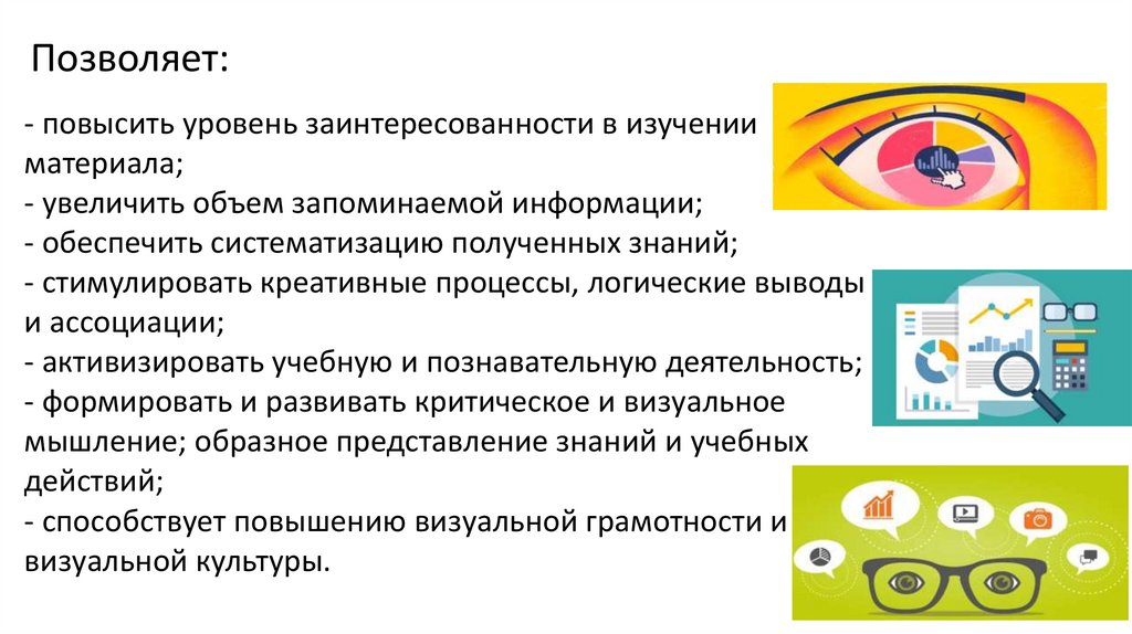 - способствует повышению визуальной грамотности и