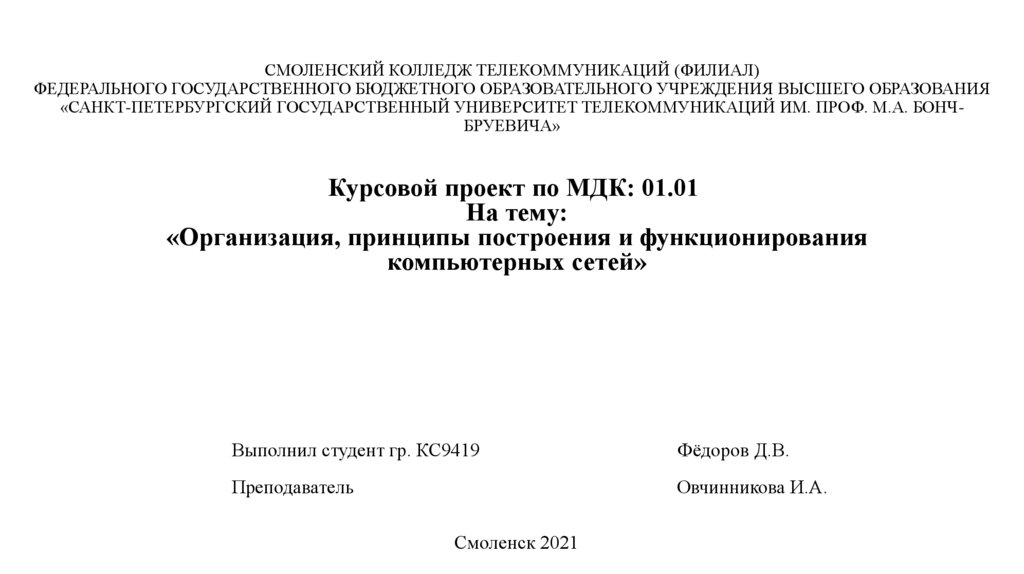 СМОЛЕНСКИЙ КОЛЛЕДЖ ТЕЛЕКОММУНИКАЦИЙ (ФИЛИАЛ)ФЕДЕРАЛЬНОГО ГОСУДАРСТВЕННОГО БЮДЖЕТНОГО ОБРАЗОВАТЕЛЬНОГО УЧРЕЖДЕНИЯ ВЫСШЕГО ОБРАЗОВАНИЯ