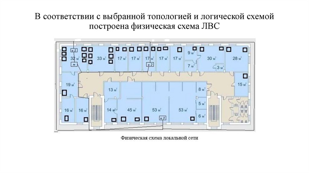 В соответствии с выбранной топологией и логической схемойпостроена физическая схема ЛВС