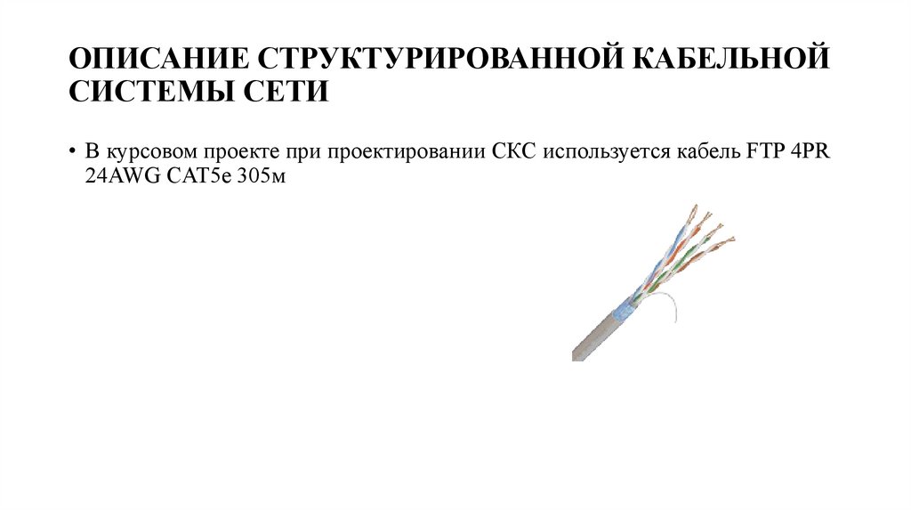 • В курсовом проекте при проектировании СКС используется кабель FTP 4PR