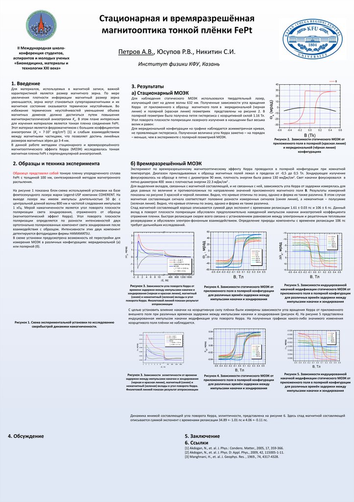 Эксперимент по времяразрешенному магнитооптическому эффекту Керра проводился в полярной конфигурации при комнатной